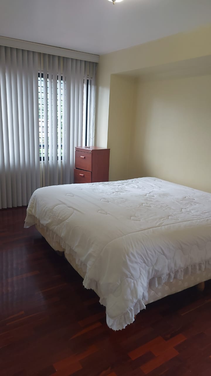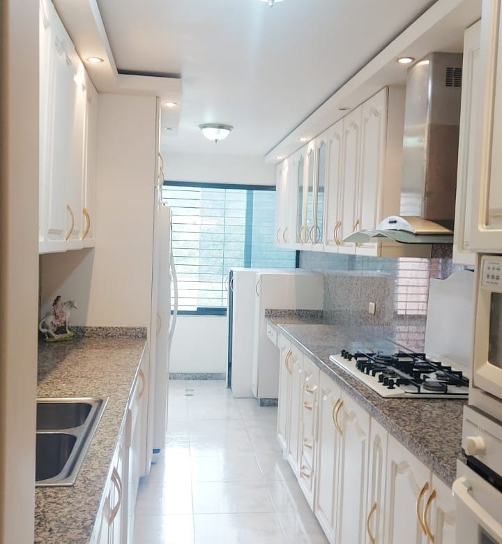 En la Urbanización Los Geranios, en La Boyera, se alquila bello apartamento que posee: 120 m2, 3 habitaciones, 2 baños y 2 puestos de estacionamiento. Tiene una hermosa cocina con tope de granito, las habitaciones con closet cada una y los baños están actualizados. Ubicado en piso bajo. El edificio en excelentes condiciones, cuenta con gimnasio y lo más importante, el servicio de agua es constante.