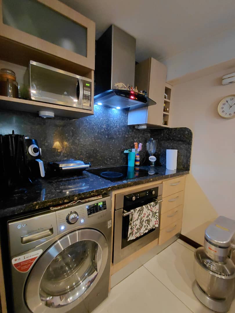 Cómodo apartamento tipo estudio mono-ambiente con 1 baño y 1 amplio puesto de estacionamiento, cocina empotrada con todos sus artefactos (Lavadora LG, Horno, Cocina y Campana, Nevera Whirlppol, Microondas, Aire Acondicionado). Estupendamente ubicado cerca de comercios de todo tipo: Automercado, Venta de víveres, Charcuterías, Panaderías, Farmacias, Colegios, Iglesias, Universidad Central de Venezuela (UCV). Edificio de baja densidad, Agua constante, Internet de Alta Velocidad (VNET 600 GB).